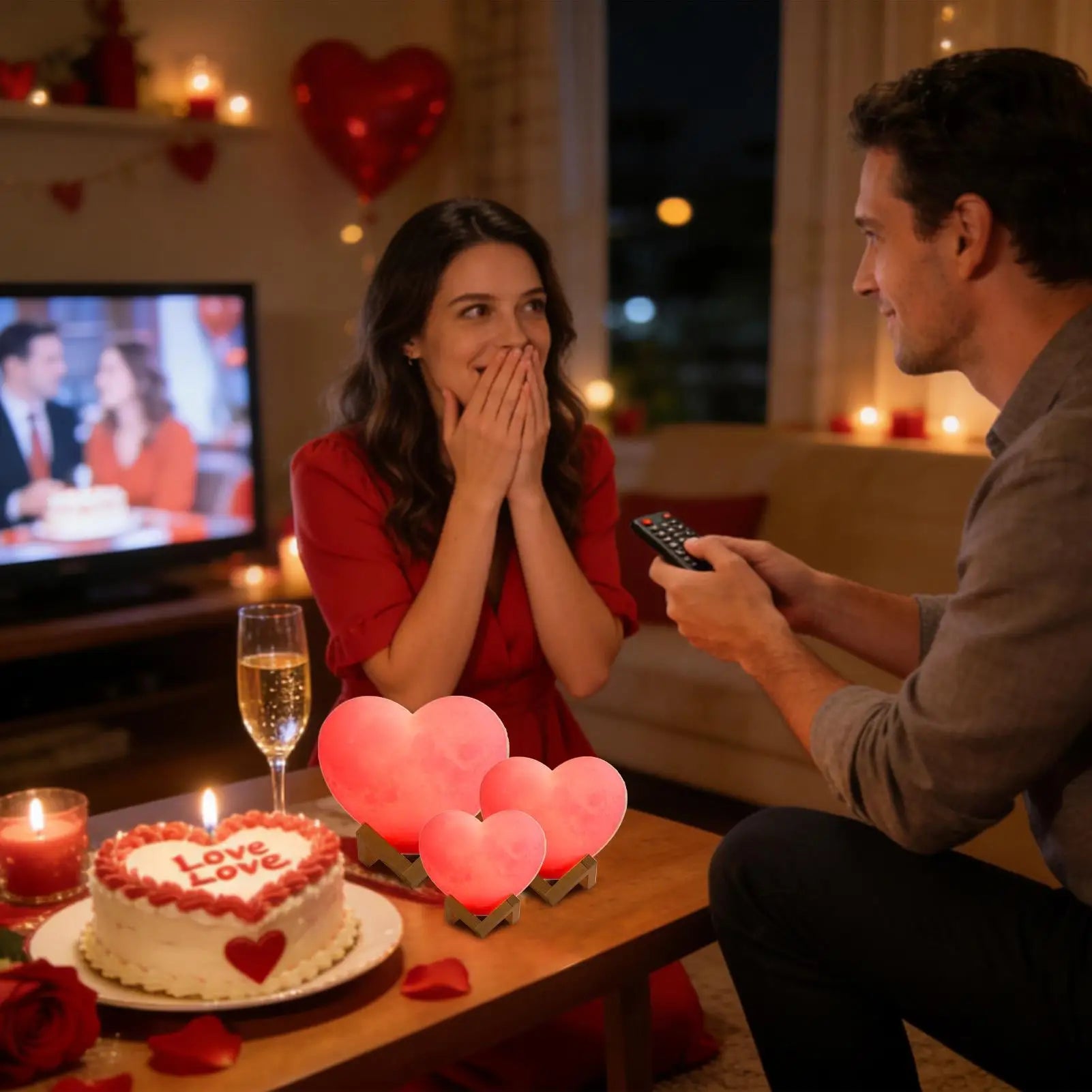 Veilleuse bébé cœur rechargeable – 16 couleurs, télécommande & socle bois – CœurLumière